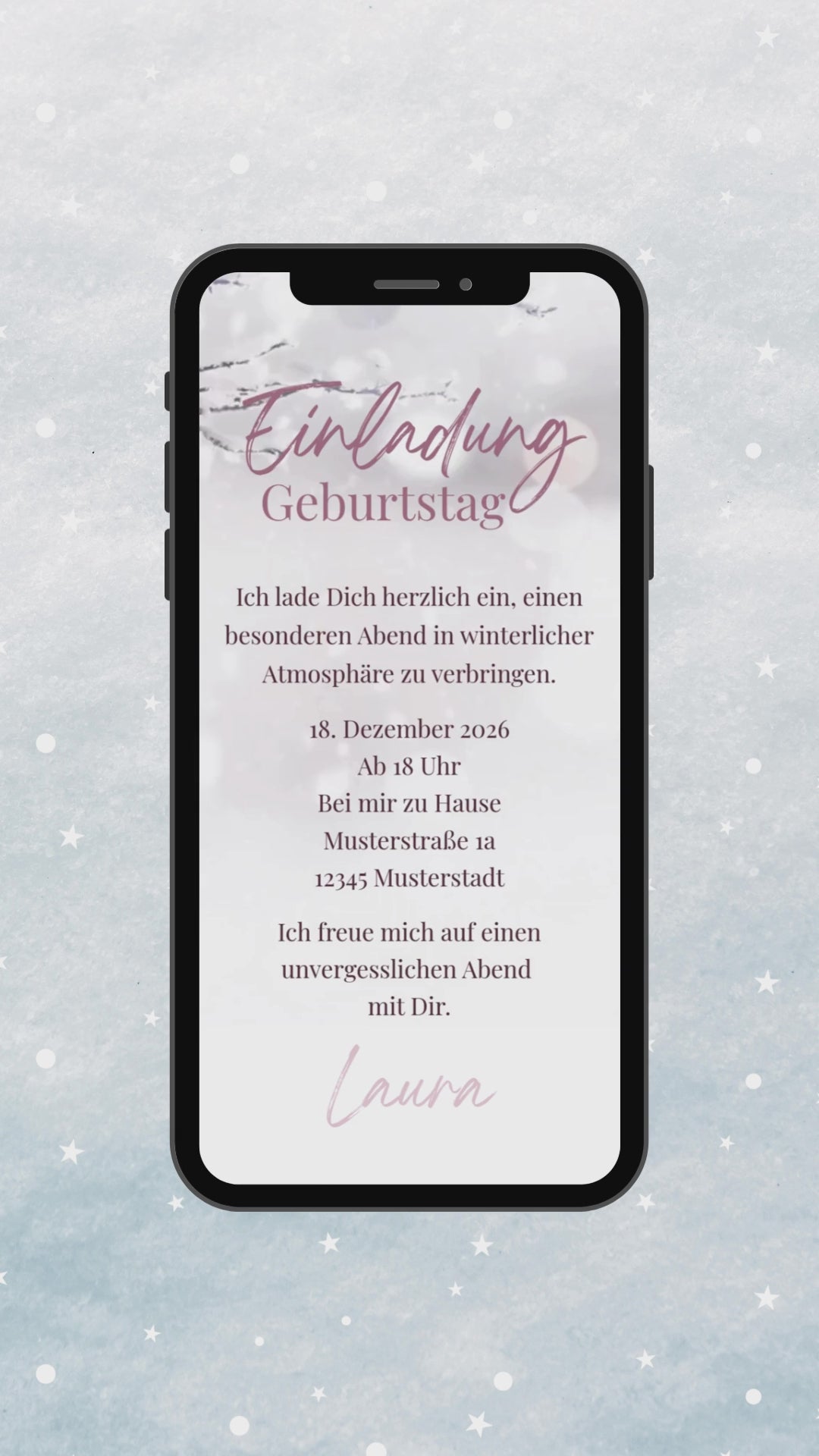 Digitale Geburtstagseinladung – Winterparty mit Schneeflocken