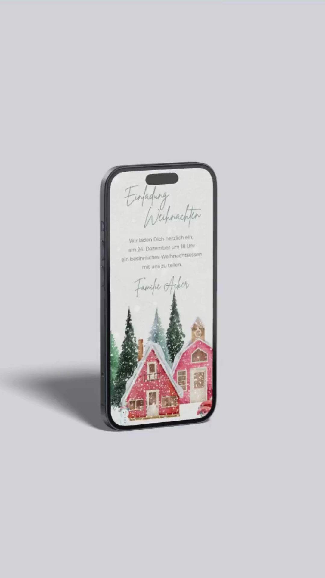 Das klare Layout, die moderne Schrift und die sanfte Farbwelt verbinden traditionelle Weihnachtsstimmung mit einem zeitgemäßen Design. Ob für ein gemeinsames Weihnachtsessen, ein entspanntes Beisammensein oder einen festlichen Abend im kleinen Kreis – diese Karte passt ideal zu Feiern, bei denen Nähe, Genuss und schöne Momente im Mittelpunkt stehen.