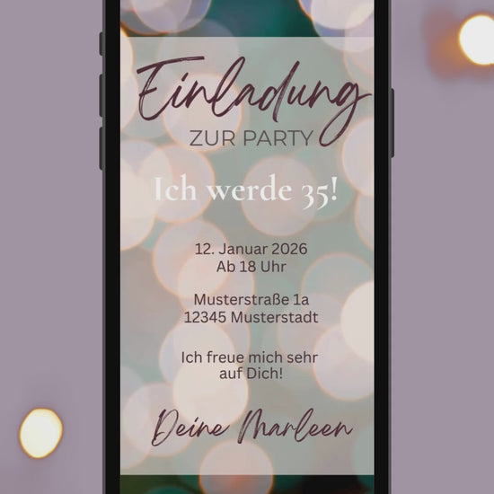 Digitale Geburtstags-Videoeinladung – Sanfte Bokeh-Lichteffekte