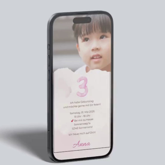 Digitale Geburtstagseinladung für Kinder – schlichtes Design in Rosa mit Foto