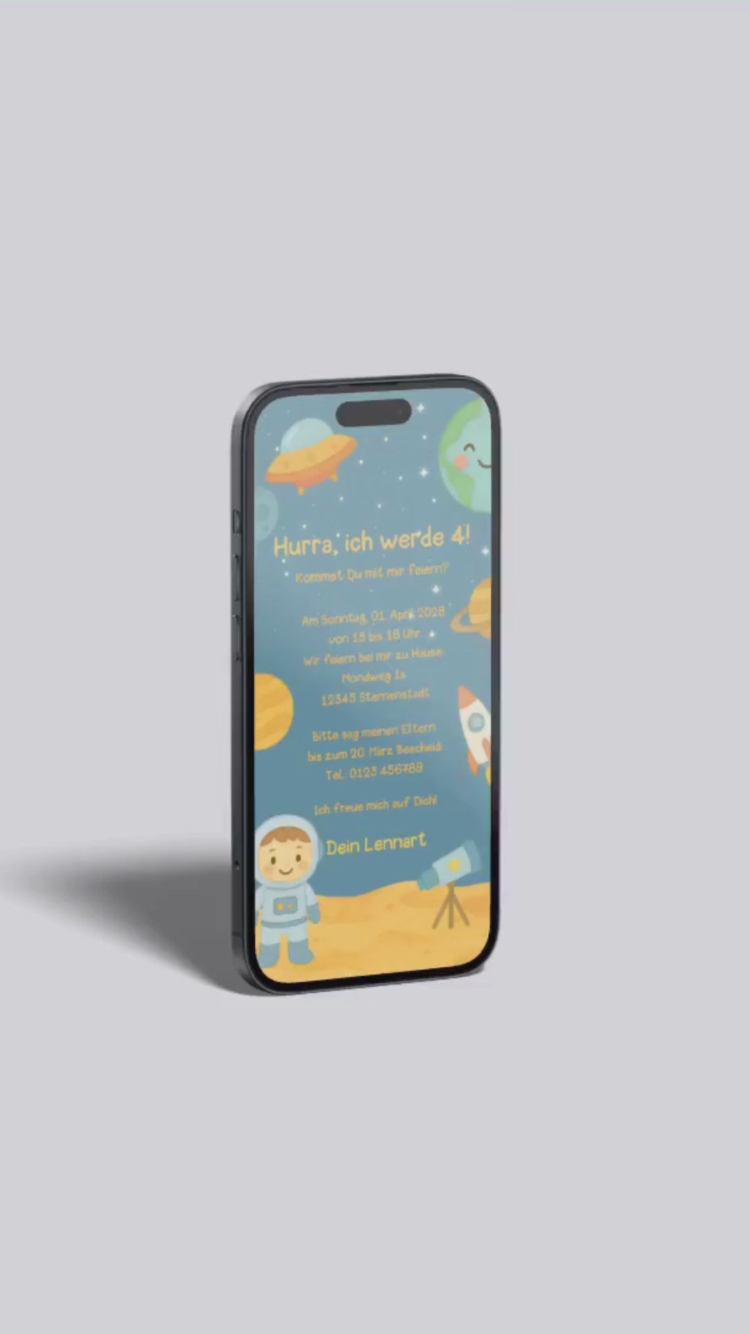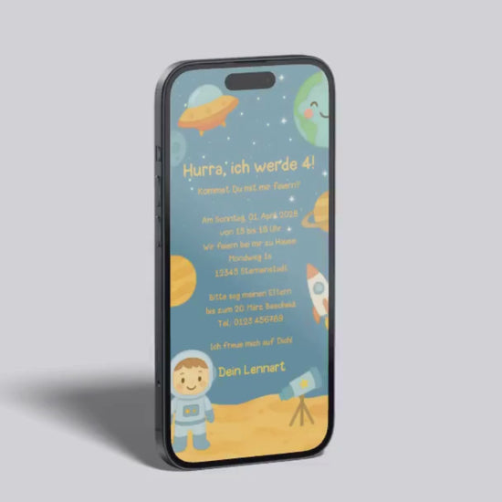 Digitale Einladung Kindergeburtstag – Weltraum & Astronaut