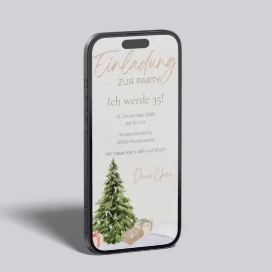 Digitale Geburtstagseinladung – Winterlich & festlich mit Weihnachtsbaum