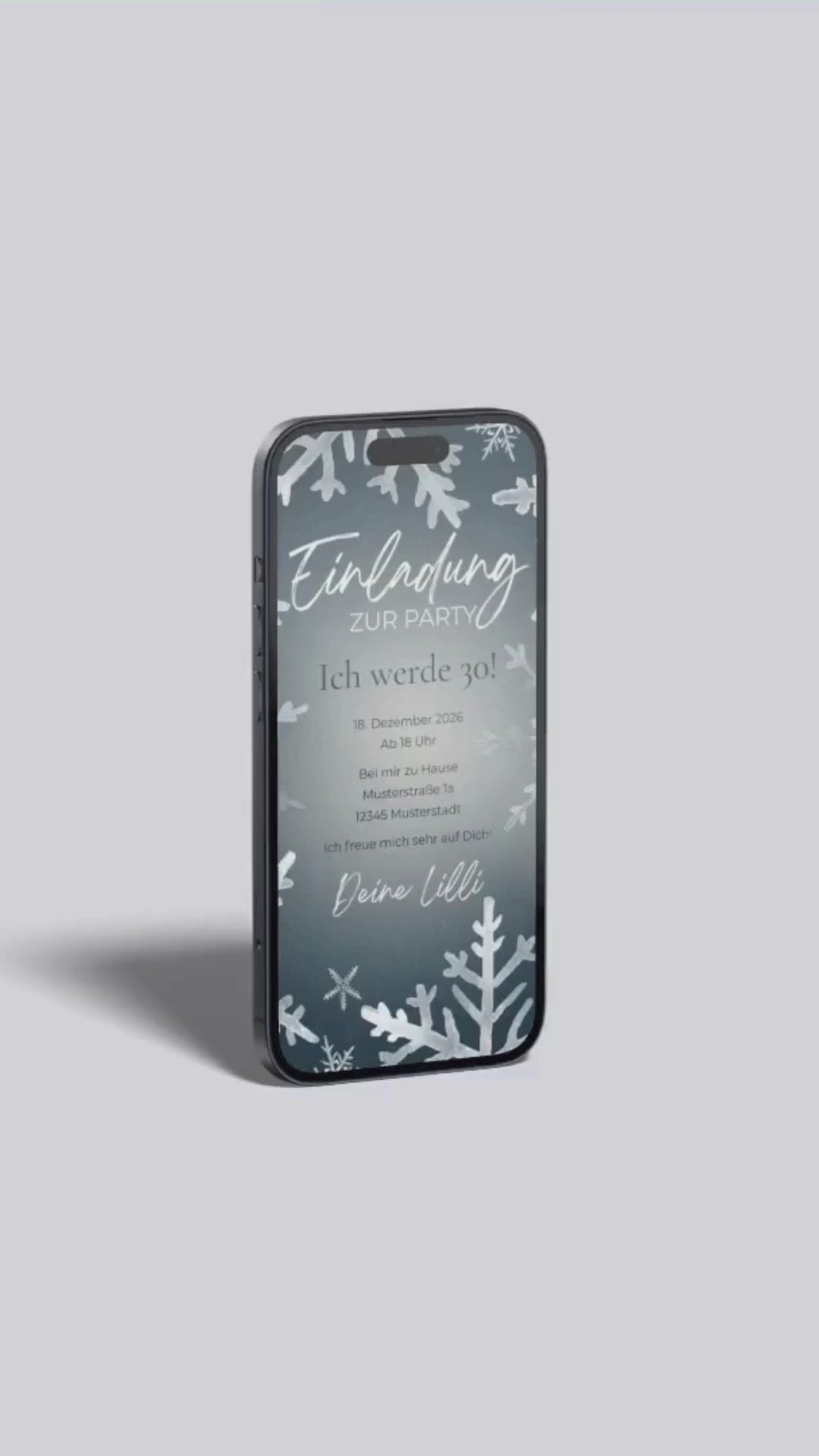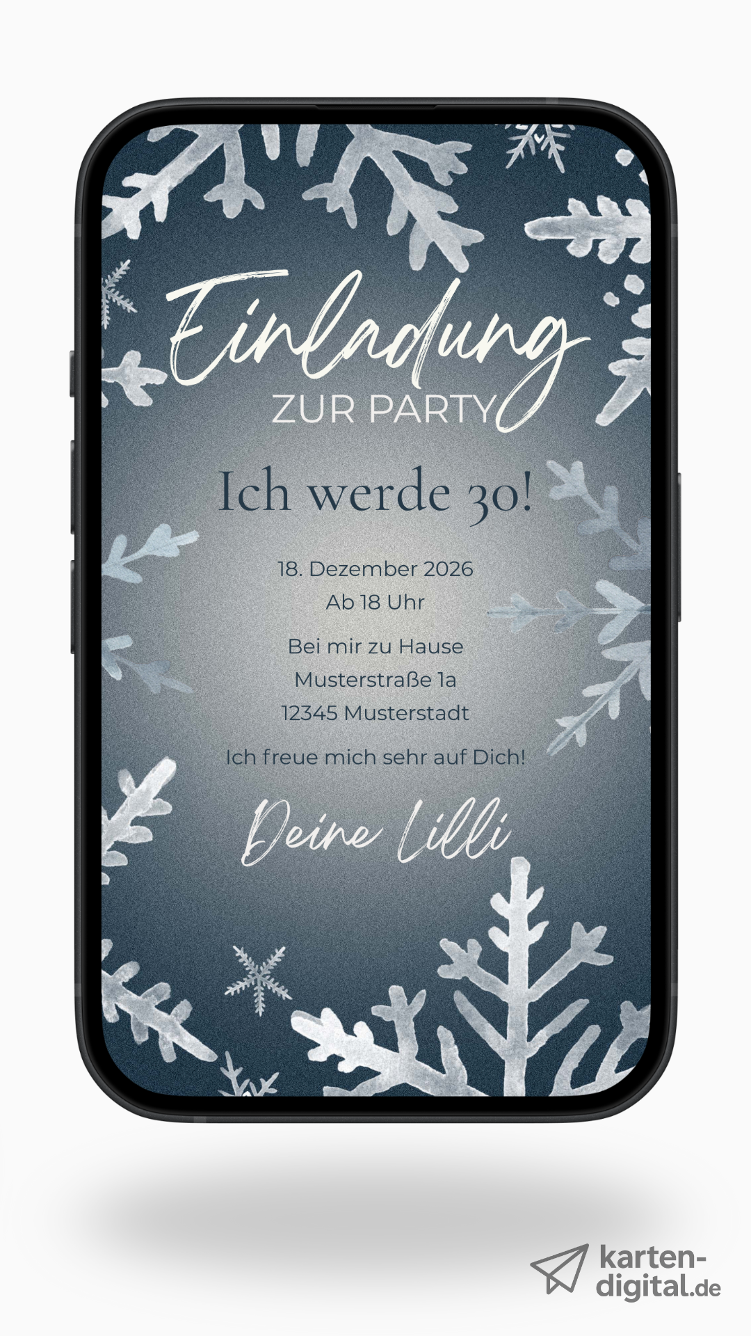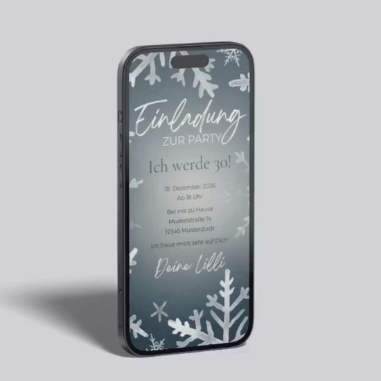 Digitale Geburtstagseinladung – Winterparty mit Schneeflocken