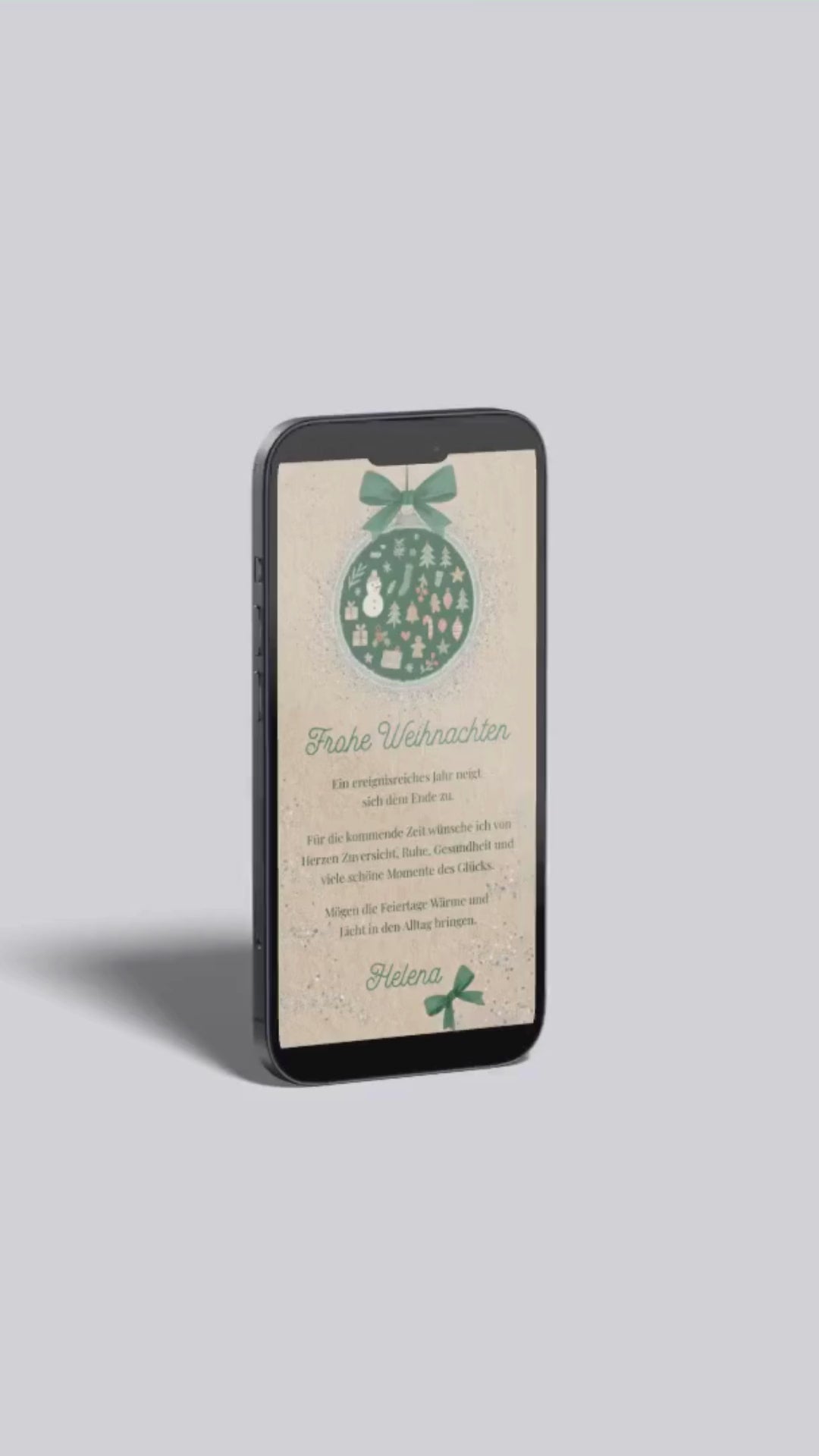 Diese Karte ist ideal für persönliche Weihnachtsgrüße im digitalen Format – klar, stilvoll und mit viel Gefühl gestaltet. Das reduzierte Farbkonzept und die ausgewogene Komposition machen sie zu einem zeitlosen Begleiter für die festliche Zeit.