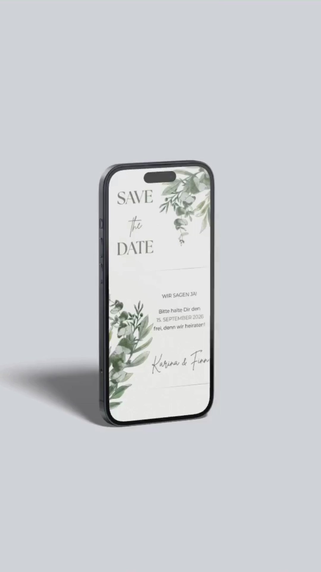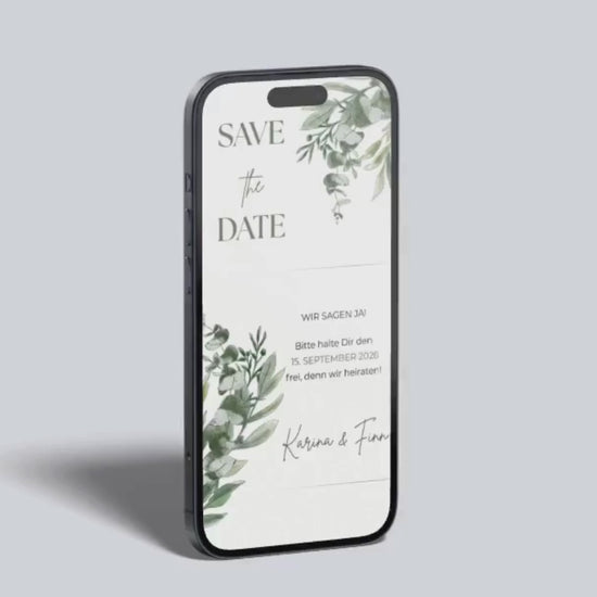 Diese digitale Save the Date Karte begeistert mit einem modernen Design, das von zarten, grünen Pflanzenmotiven inspiriert ist. Die natürliche Farbgebung vermittelt Ruhe und Harmonie und verleiht eurer Einladung eine persönliche und stilvolle Note. Perfekt, um eure Gäste frühzeitig und herzlich über euren besonderen Tag zu informieren – unkompliziert, nachhaltig und mit viel Liebe zum Detail gestaltet. Für Paare, die eine frische, elegante Einladung schätzen, die im Gedächtnis bleibt.