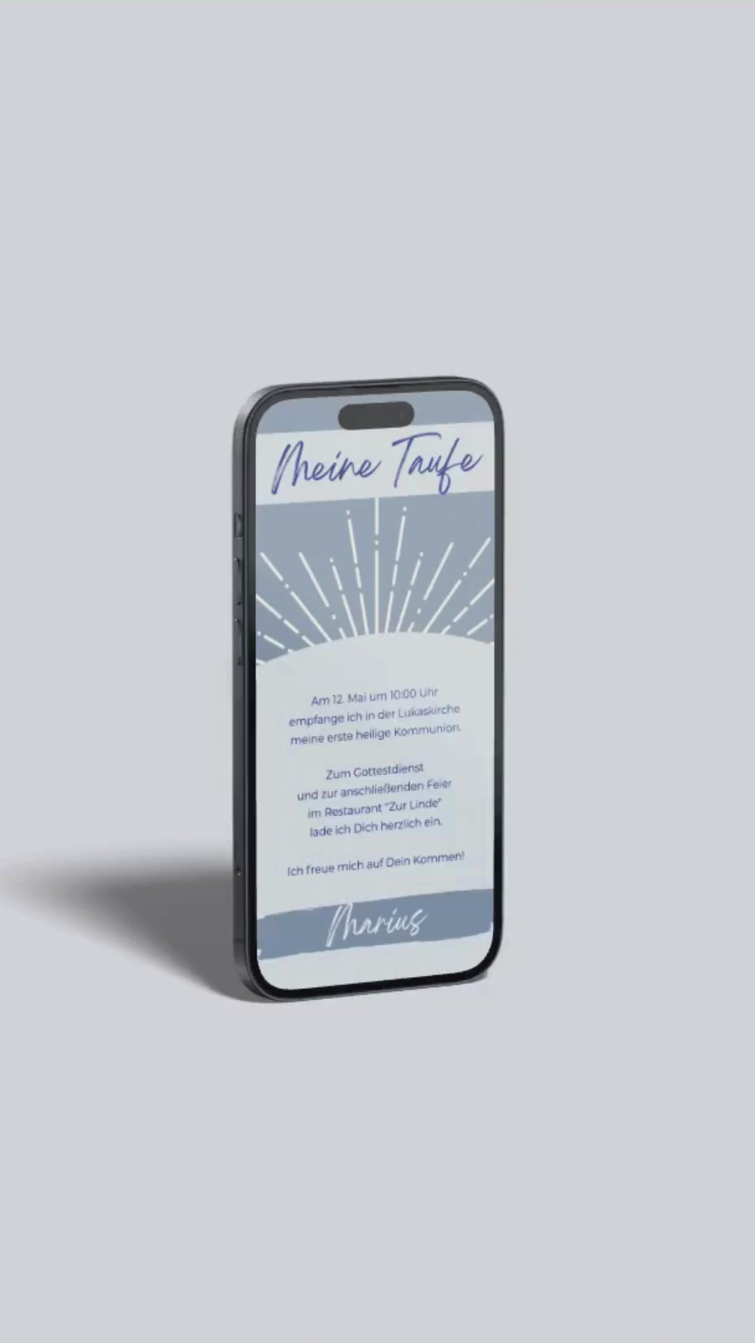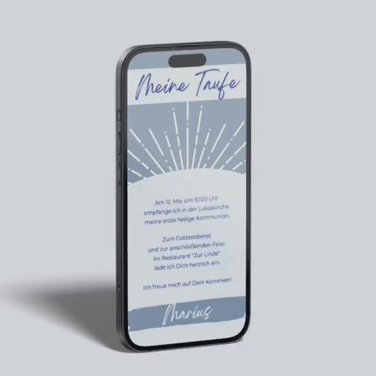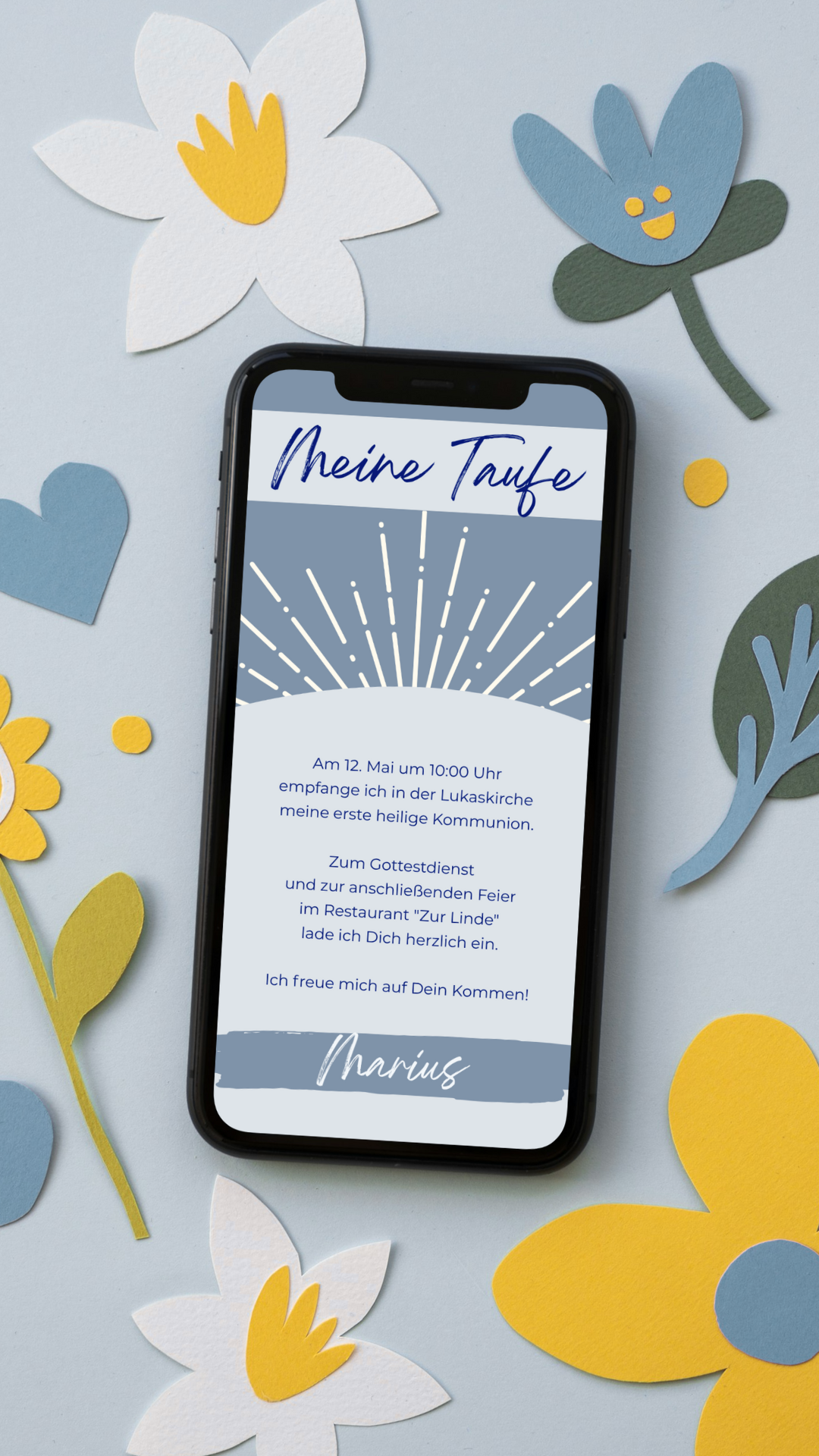 Moderne digitale Taufeinladung in Blau – stilvoll & zeitgemäß