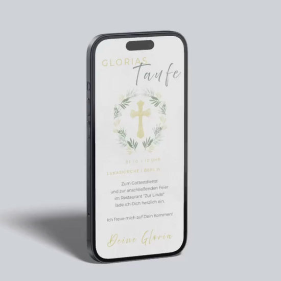 Digitale Taufeinladung – schlicht & elegant mit goldener Kreuzgrafik