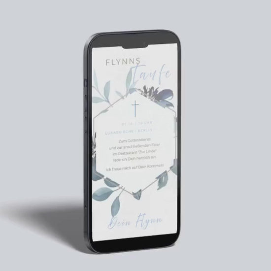 Digitale Taufeinladung – stilvoll & modern mit blauen Aquarellblättern