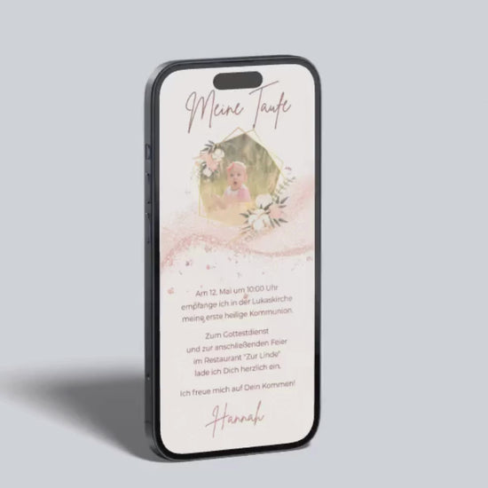Digitale Taufeinladung in Roségold – elegante & schlichte Einladung zur Taufe