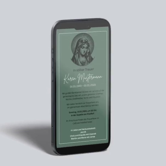 Digitale Trauerkarte mit Marienmotiv – stilvoll und spirituell zur Beerdigung einladen