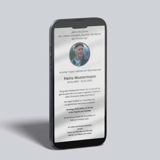 Digitale Trauerkarte mit Foto und Zitat – persönlich Abschied nehmen und zur Beerdigung einladen