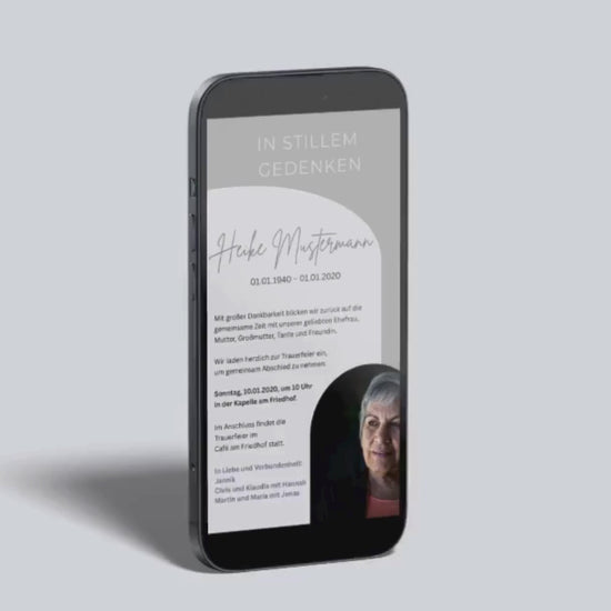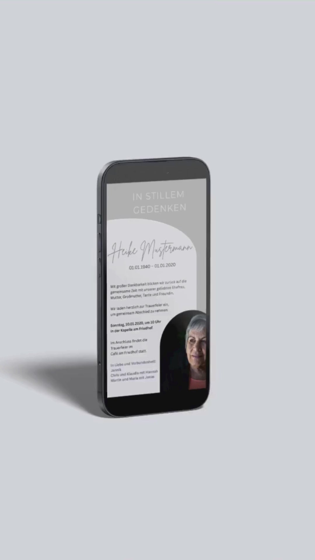 Die Karte eignet sich ideal für den digitalen Versand per WhatsApp, E-Mail oder Nachricht – ein stilvoller Weg, um auch auf Distanz Verbundenheit auszudrücken und zur Beerdigung einzuladen.